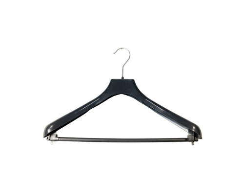 Deze stevige kledinghanger met broeklat is ideaal voor het ophangen van zware kledingstukken zoals colberts, jassen en kostuums. Dankzij de brede schouders van 42 mm blijven kledingstukken stevig op hun plaats en behouden ze hun vorm. De hanger is geschikt voor zowel particulier gebruik als voor commerciële toepassingen in kledingwinkels en showrooms. De zwarte kleur geeft een professionele uitstraling en past in vrijwel elk interieur. Met de keuze tussen verschillende breedtes kunt u de hanger afstemmen op de specifieke behoeften van uw garderobe of winkelpresentatie.