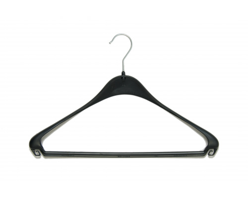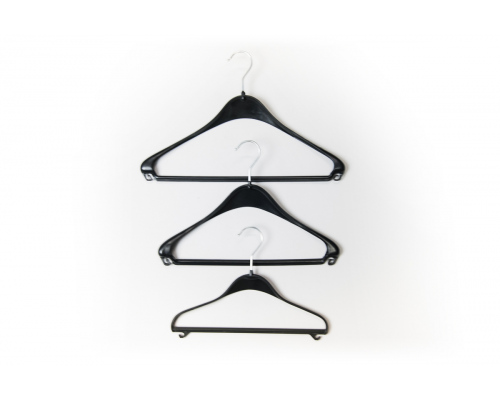 De F-serie kledinghanger met broeklat is ontworpen voor veelzijdig gebruik. Dankzij de verschillende beschikbare breedtes is deze hanger geschikt voor diverse kledingstukken, van kinderkleding tot volwassen kostuums en jassen. De geïntegreerde broeklat maakt het mogelijk om complete outfits, zoals een colbert met bijpassende pantalon, op één hanger te presenteren, wat ruimtebesparend werkt en zorgt voor een georganiseerde uitstraling. De stevige constructie en de keuze voor gerecycled kunststof maken deze hanger tot een duurzame keuze voor zowel thuisgebruik als voor gebruik in winkels of showrooms. De F-serie combineert functionaliteit met een milieubewuste benadering, zonder concessies te doen aan kwaliteit of esthetiek.