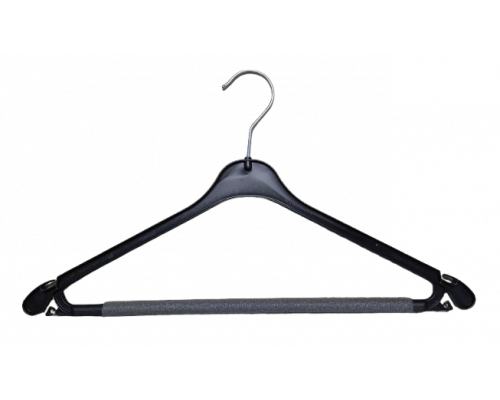 De K43S is een typische stomerij-hanger. Een multifunctionele hanger met efficiënte ruimteverdeling. Deze uitvoering is voorzien van een anti-slip schuimlaag op de broeklat waardoor kledingstukken niet er van af glijden.