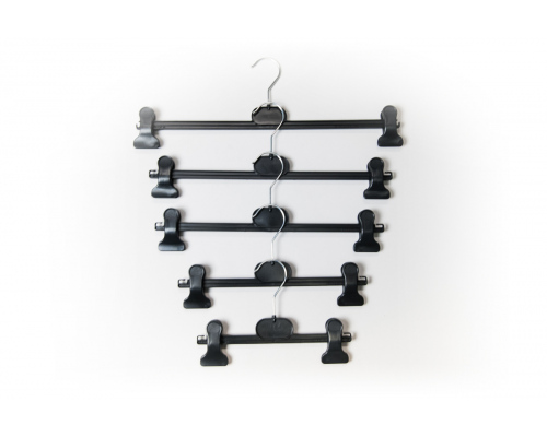 De RK-serie multifunctionele knijphanger met verstelbare knijpers van Kleerhangerstore.nl is een veelzijdige en duurzame oplossing voor het ophangen van diverse kledingstukken zoals rokken, broeken en pantalons. Vervaardigd uit zwart gerecycled kunststof, combineert deze hanger milieuvriendelijkheid met functionaliteit. Met breedtematen variërend van 24 cm (baby- en kindermaat) tot 46 cm en een schouderdikte van 8 mm biedt de RK-hanger voldoende ondersteuning voor diverse kledingstukken. De verstelbare knijpers zijn voorzien van een grijs rubberen binnenlaag om afdrukken in de kleding te verminderen. Met verpakkingseenheden variërend van 160 tot 275 stuks en een levertijd van 2-3 werkdagen is de RK-hanger ideaal voor zowel particuliere als zakelijke toepassingen.