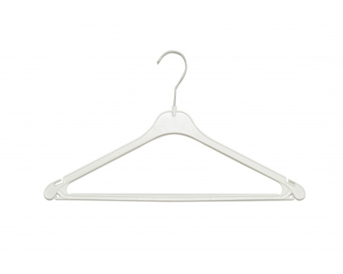 De K-43 stomerijhanger met broeklat van Kleerhangerstore.nl is een robuuste en veelzijdige oplossing voor het professioneel ophangen van diverse kledingstukken. Vervaardigd uit zwart gerecycled kunststof, combineert deze hanger duurzaamheid met functionaliteit. Met een breedte van 43 cm en een schouderdikte van 10 mm biedt de K-43 voldoende ondersteuning voor kledingstukken zoals overhemden, blouses en pantalons. De geïntegreerde broeklat maakt het mogelijk om complete outfits op één hanger te presenteren, wat ruimtebesparend werkt en zorgt voor een georganiseerde uitstraling. De K-43 is ideaal voor gebruik in stomerijen, kledingwinkels en thuis, dankzij de combinatie van kwaliteit, functionaliteit en een aantrekkelijke prijsstelling.