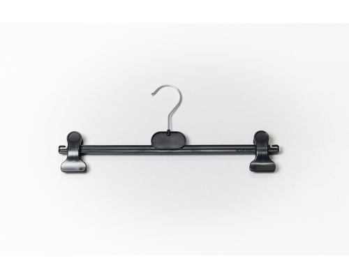 De RK hanger is een multifunctionele cliphanger. De klemmen zijn verschuifbaar en zijn voorzien van een grijs rubberen binnenlaag om afdrukken in de kleding te verminderen.